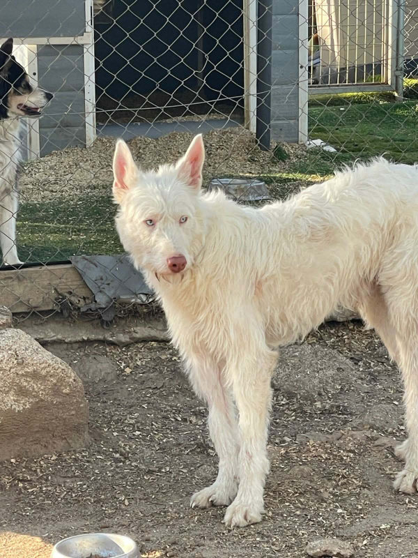 Barny met ogen zo blauw als de zee, is bij BichosRaros aangekomen nadat hij van een zekere dood werd gered toen zijn jager hem in een put probeerde te gooien. Zijn enige misdaad is een kleine misvorming aan zijn poten, veroorzaakt door een aanrijding met een auto, waarvoor zijn eigenaar hem nooit heeft laten behandelen.