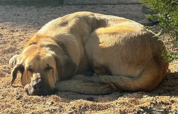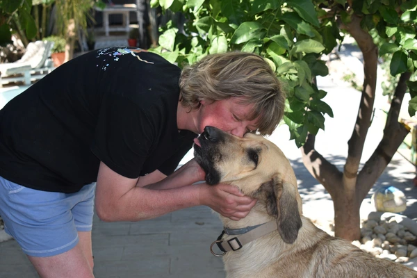 Poka werd gered door een Franse dame die haar die haar dag in dag uit zag liggen in de blakende zon vastgeketend aan een korte ketting zonder water of eten graatmager. Na veel zeuren en haar telefoon nummer achter kreeg ze op een dag het verlossende belletje , ze mocht Poka dadelijk komen halen, ze aarzelde geen moment sprong in haar auto en ging achter Poka wat ze vond was nog een skelet van amper 18kg Maar nu na enkele maanden is ze mooi op gewicht en zo ontzettend dankbaar , Poka is een lieve zachtaardige dame , ze beseft niet altijd dat ze zo groot is en denkt soms nog dat ze een schoothondje is. Ze houdt van mensen en kinderen en wandelt goed mee aan de lijn Ze kan het goed vinden met andere honden , met speelgoed of eten kan ze wel dominant uit de hoek komen ze eet daarom best apart en wordt speelgoed vermeden Kan niet samen met katten.